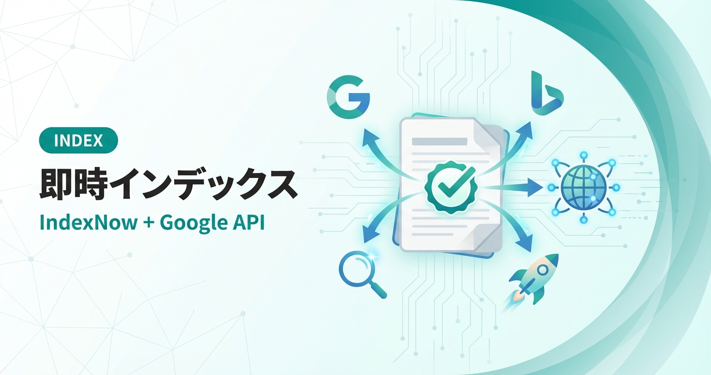 - Google Indexing API — OAuth2 + REST APIでGoogleに直接通知(数時間〜1日)